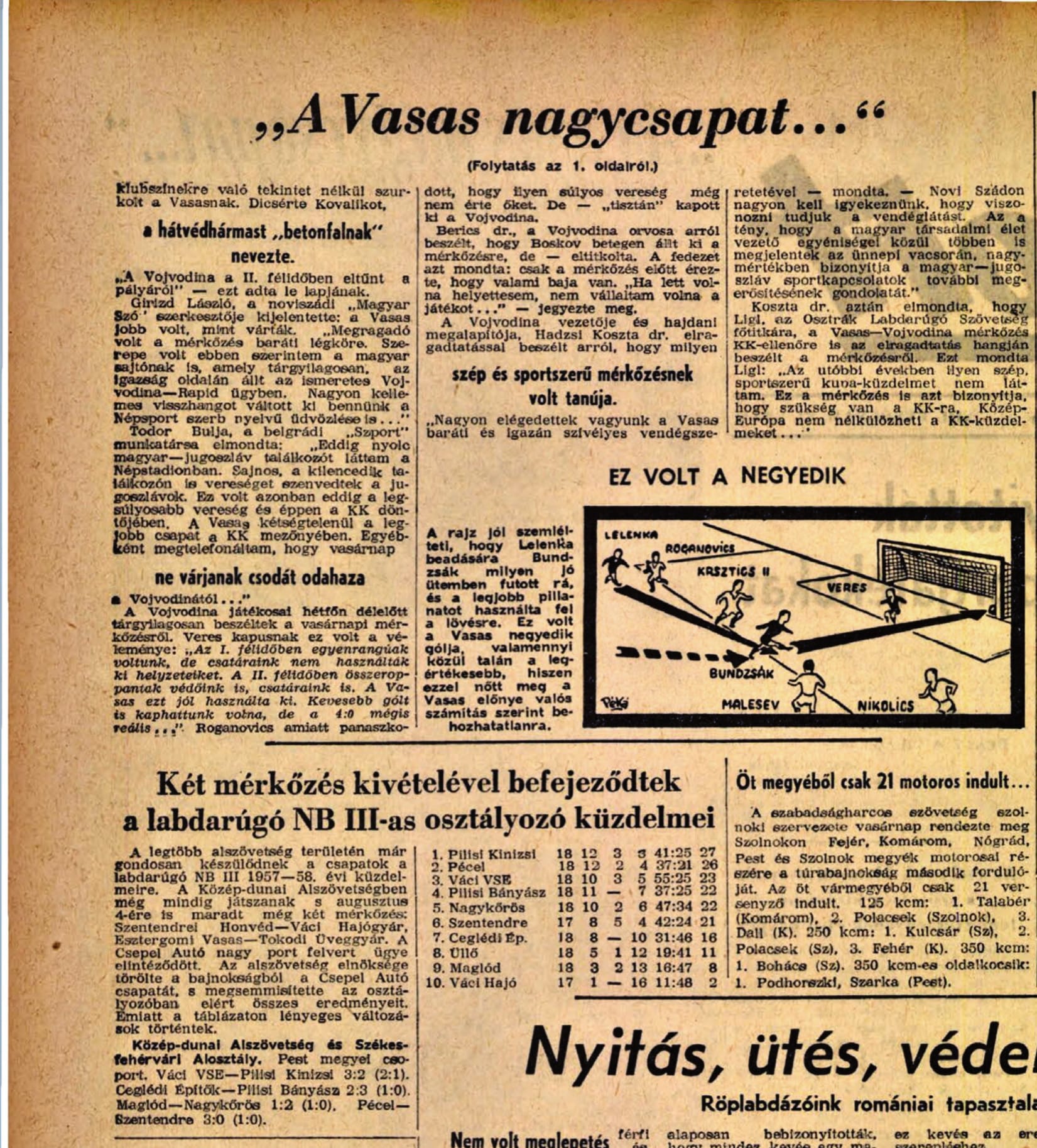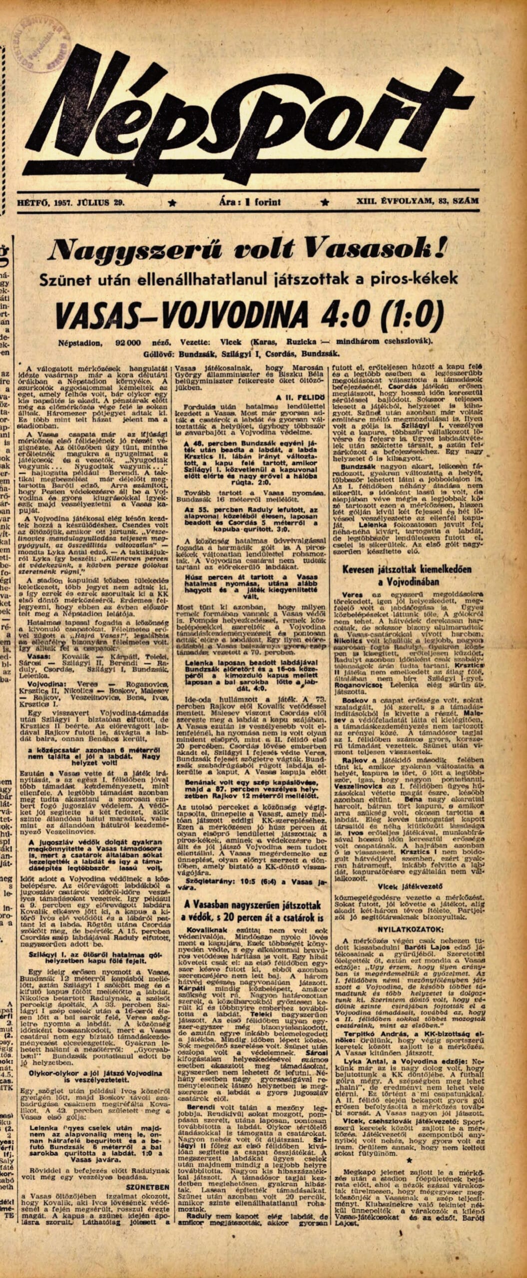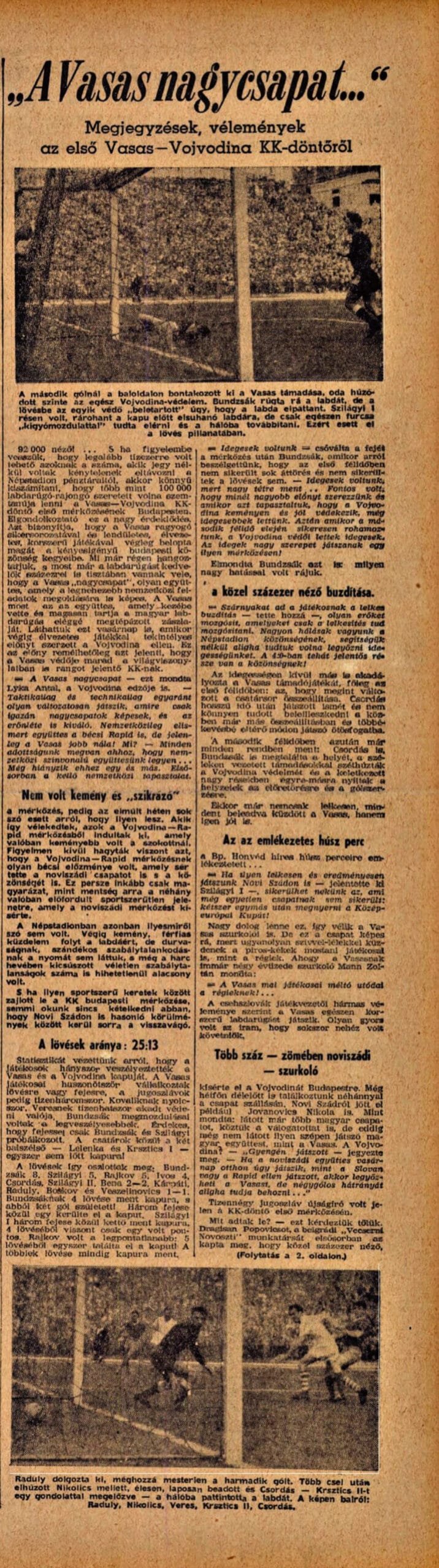 Ezúttal több olvasnivalót is mellékelek nektek – hiszen a Népsport két számban foglalkozott a Vasas–Vojvodina döntő első meccsével.